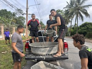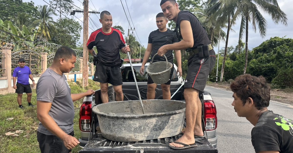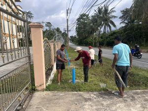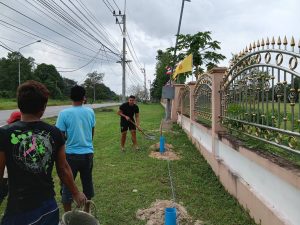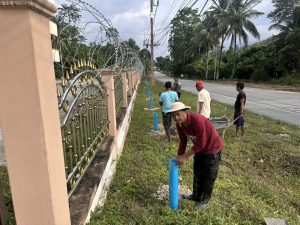 พร้อมด้วย ข้าราชการตำรวจ สภ.เจาะไอร้อง ร่วมกิจกรรมจิตอาสาพัฒนาปรับปรุงภูมิทัศน์บริเวณหน้า สภ.เจาะไอร้อง ขุดหลุมติดตั้งเสาตาข่ายเพื่อป้องกันการขว้างระเบิดเข้ามาใน สภ.
